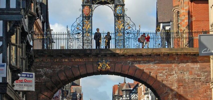 Una de las visitas obligadas en Chester es Eastgate. Esta puerta arqueada está coronada por un gran reloj. Se encuentra en el centro de la ciudad, no lejos de la catedral de Chester y de las orillas del río que atraviesa la ciudad.